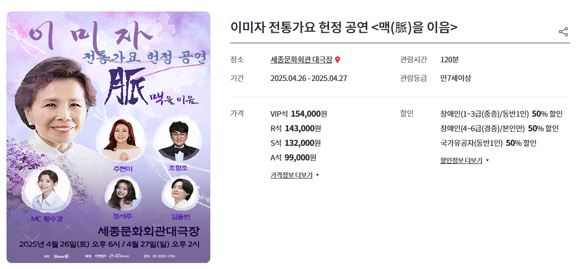 🎫 이미자 헌정 공연 티켓 예매 방법 및 유의사항