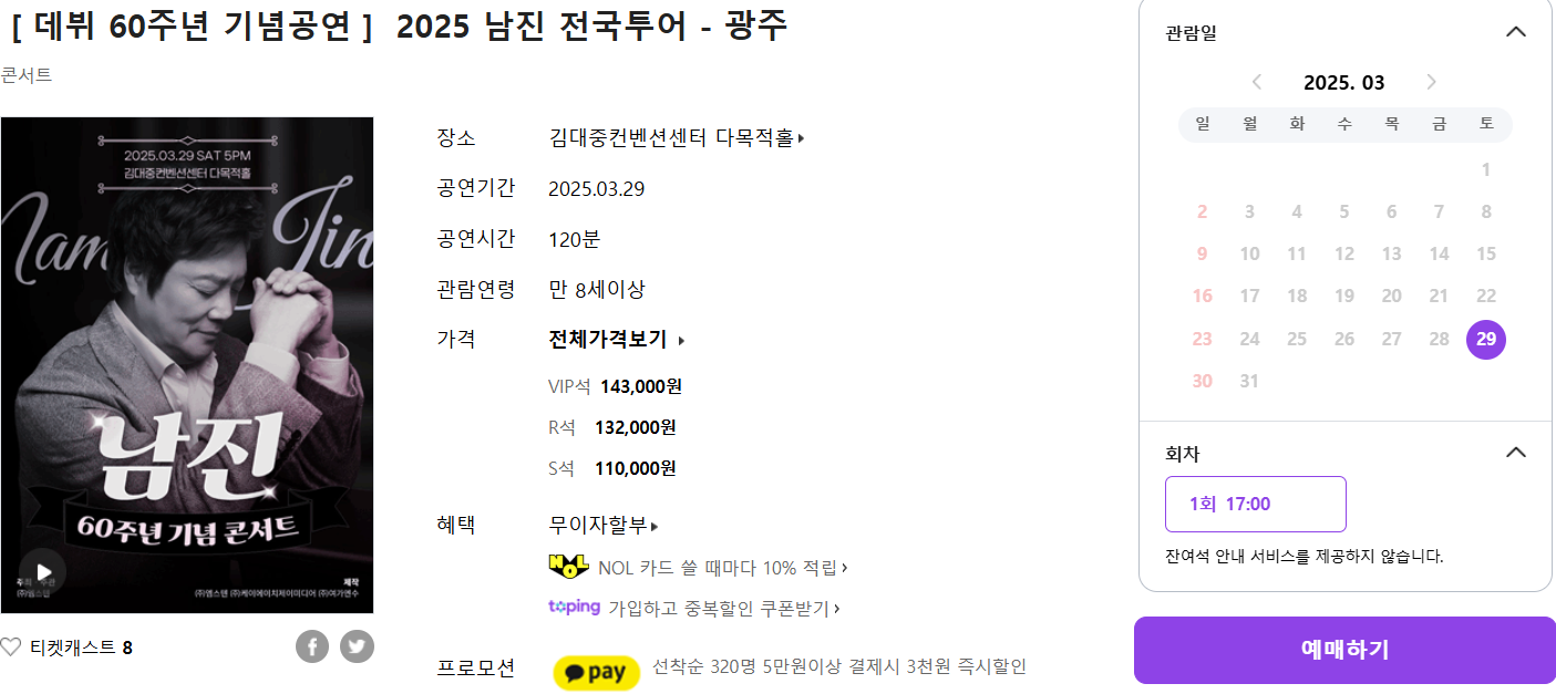 남진 콘서트 광주 티켓 예매 안내 🎫