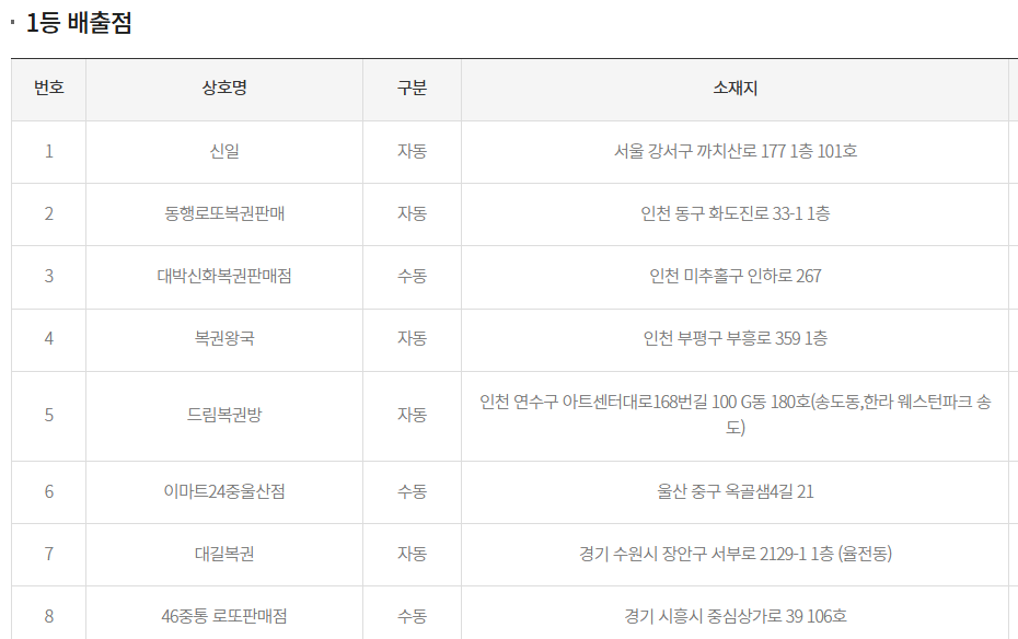 특히 인천과 서울에서도 당첨자가 나타났지만, 경기도가 가장 많은 당첨자를 배출한 점은 눈여겨볼 만한 사항입니다. 명당 지역은 과거에 비해 당첨 확률이 높다는 의견이 많기 때문에, 로또를 구매하는 이들에게는 각 지역별 판매점도 중요한 정보가 됩니다.