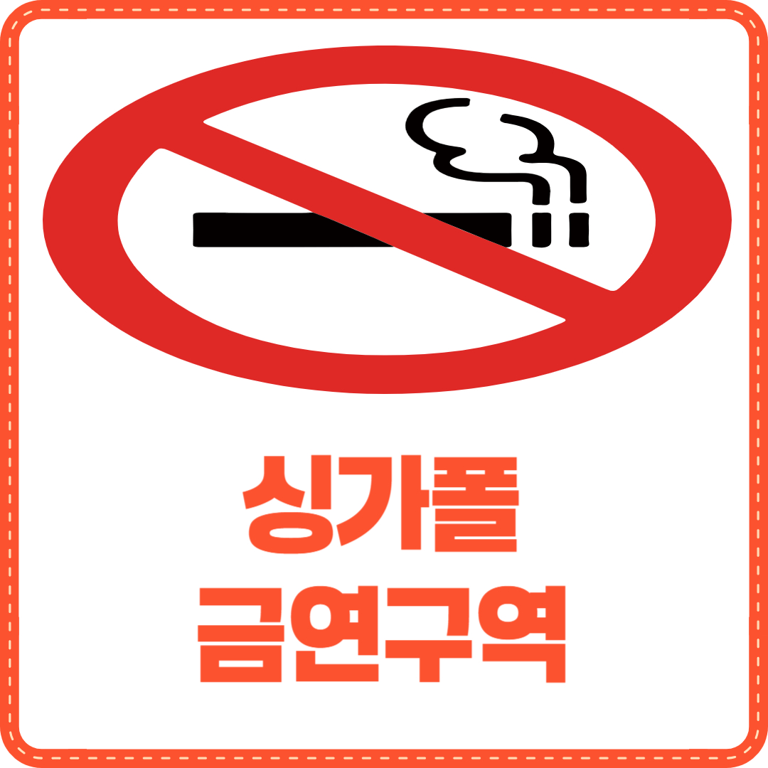 싱가폴에서는 흡연이 금지된 구역이 굉장히 많습니다. 주요 금연 구역으로는 모든 실내 건물, 오차드 지역, 해변가, 병원 및 학교 근처, 공원, 버스 정류장 등이 있습니다.